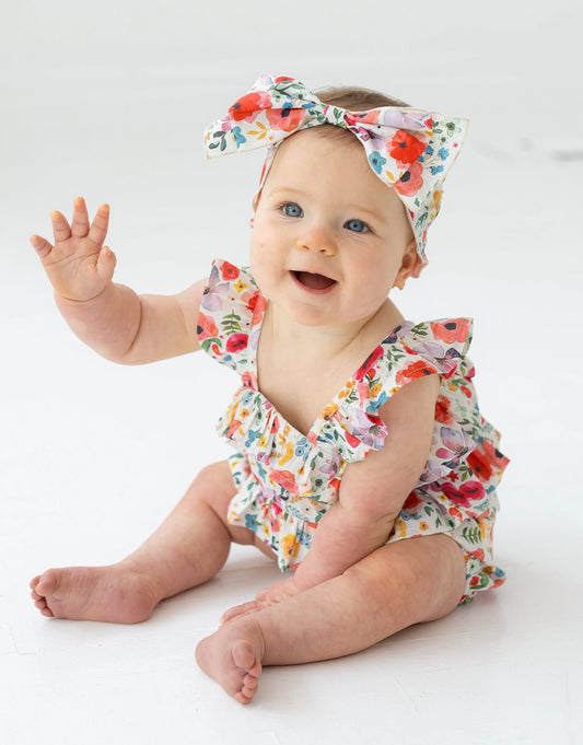 Ditsy Floral Bow Patch Short Sleeve Romper