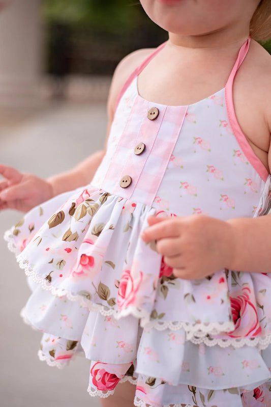 Vintage Rosebuds Cap Sleeve Smocked Blouse and Bloomer