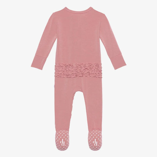 Dusty Rose - Footie Ruffled Zippered One Piece